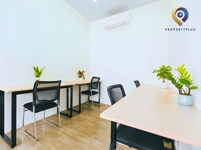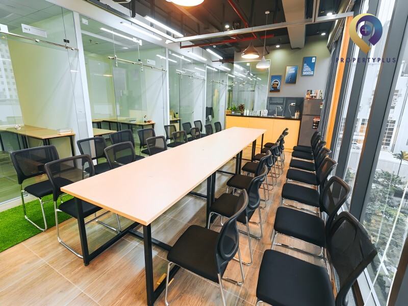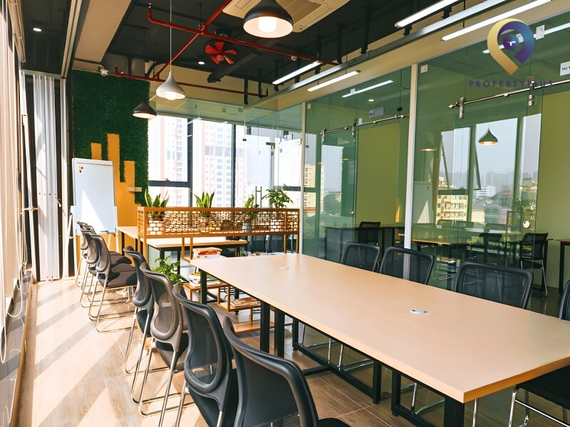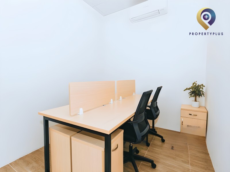 Bàn riêng cố định, kèm tủ cá nhân trong không gian chung.